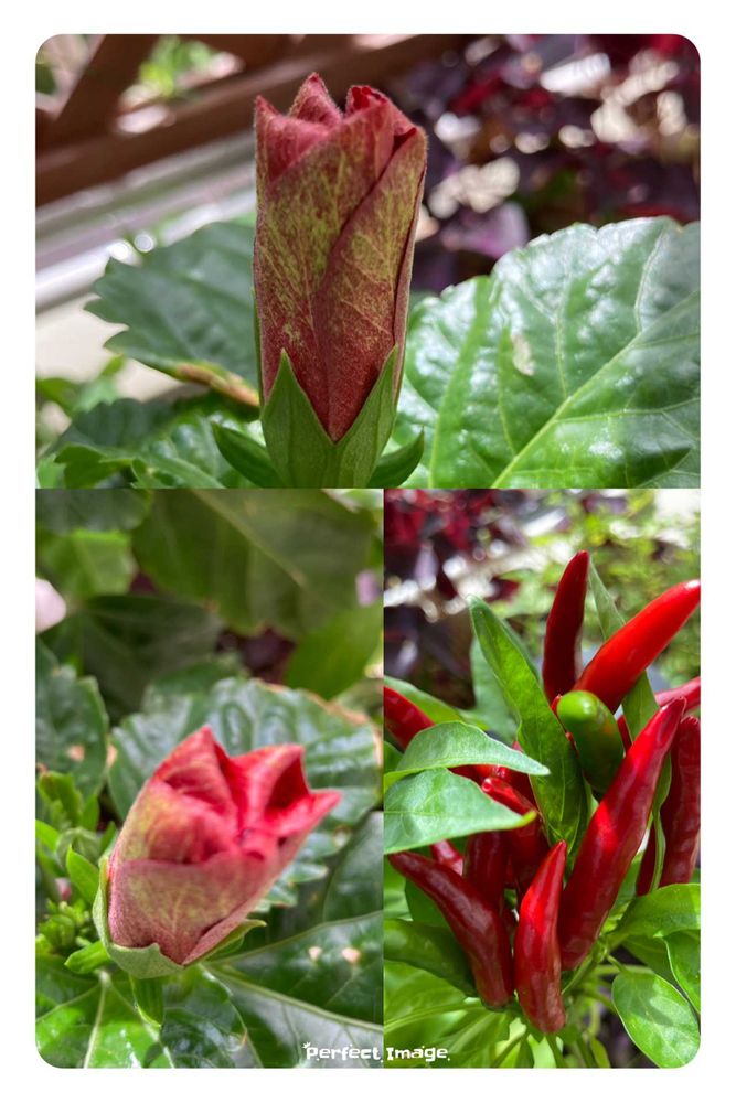 次は赤のハイビスカス🌺が2つの蕾を持って咲きそ