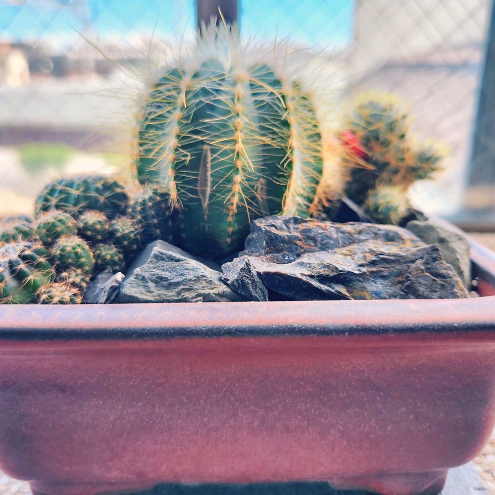 ダイソー百円だったマグニフィカス、3月に小品盆栽鉢にハビタット寄せ植えしてましたが肉割れするぐらいに肥大😅
