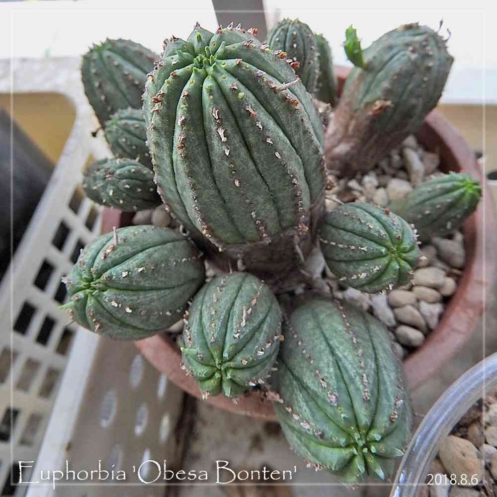 ユーフォルビア、オベサ梵天。仔吹きも増えて順調に成長中。9月が来れば育てはじめて丸4年。