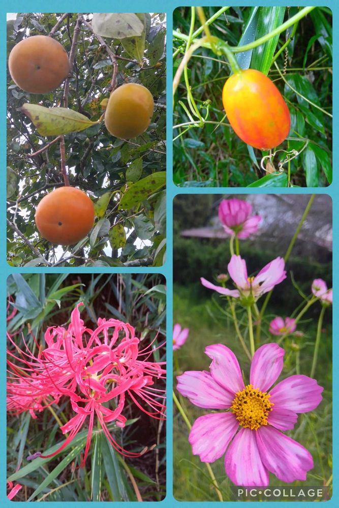葉っぱちゃんさんのカラスウリ,コスモス,柿の実の投稿画像