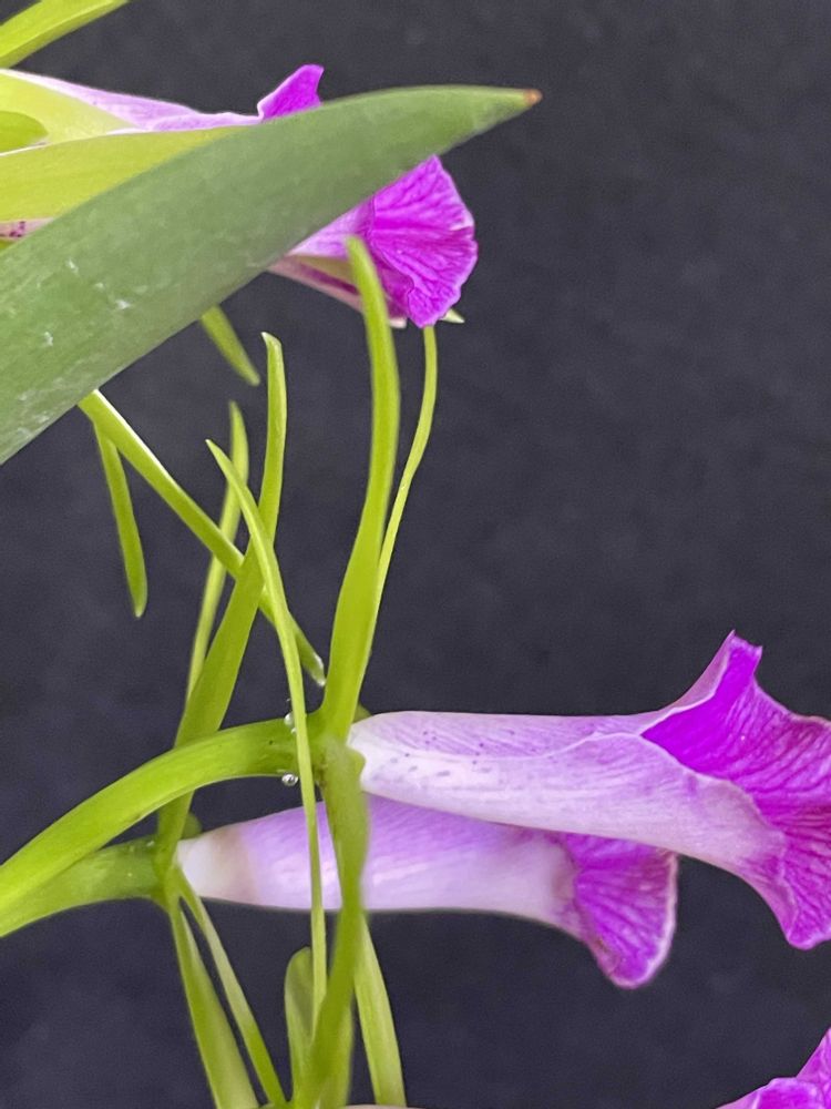 緑色のセパル(萼片)ペタル(花弁)は、ほぼ180度に開き、横から見ると線状態です