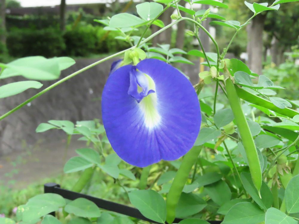 「バタフライピー(蝶豆)」が一輪、綺麗に咲いていました。 パチリ