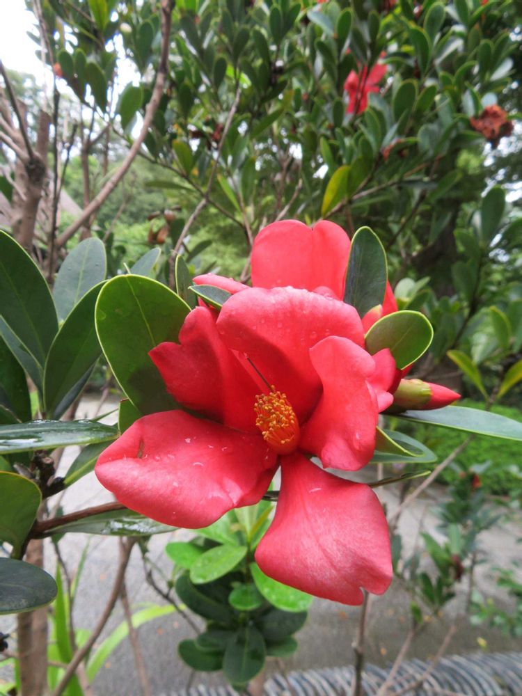アザレアツバキは真夏に咲くツバキ属の植物で、6月~9月まで咲くらしい。