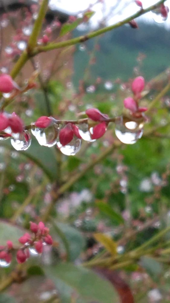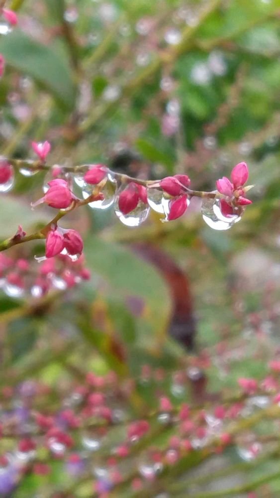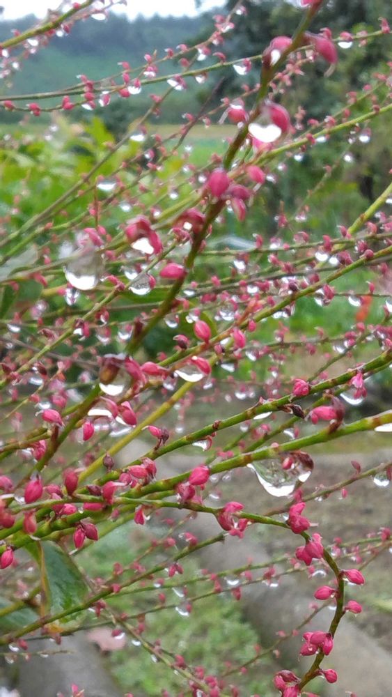 雨上がりに花壇を見回りしていたら、ミズヒキに雫が沢山有ったので撮って見ました⤴️💧✨✌🤗