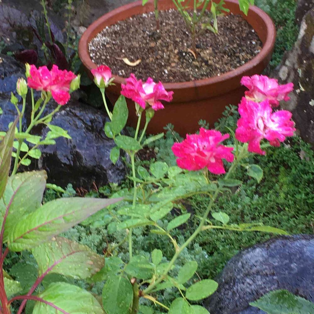 少し花は小さくなりましたが、これまたよく咲きます♪バーガンディアイスバーグ。カンカン照りのロックガーデンにいます😳