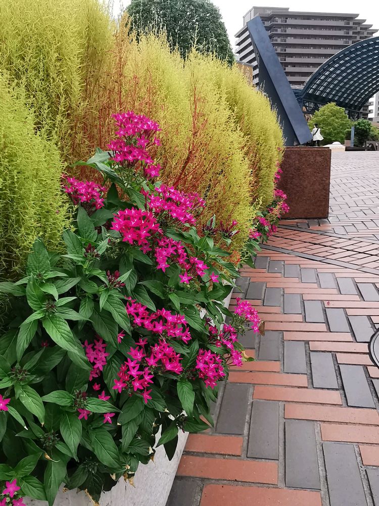 ベンチ前のコキア
