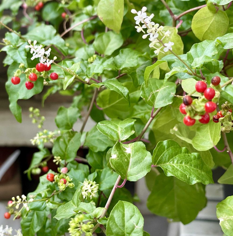 ほんとに、細やかな、白いお花と朱色の実がとても可愛い植物ですよねꈍ .̮ ꈍ