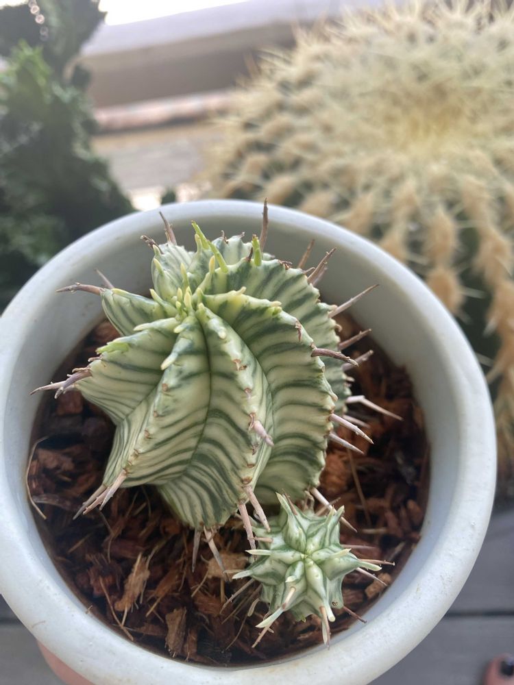 バルコニー/ベランダ,ベランダ,ユーフォルビア メロフォルミス錦の投稿画像