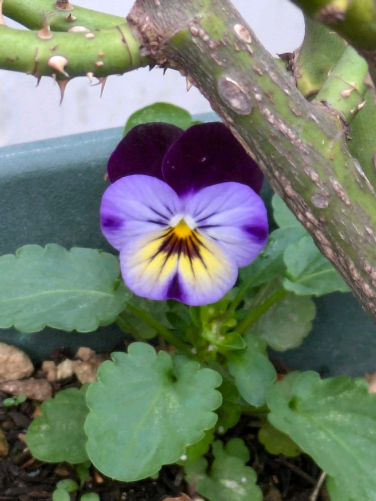 マイスタージンガーの鉢のこぼれ種ビオラ、移植する前に咲いちゃいました😅