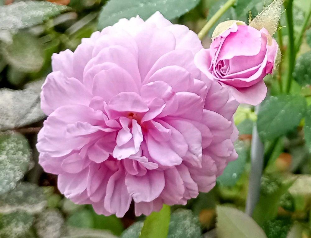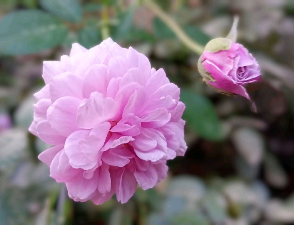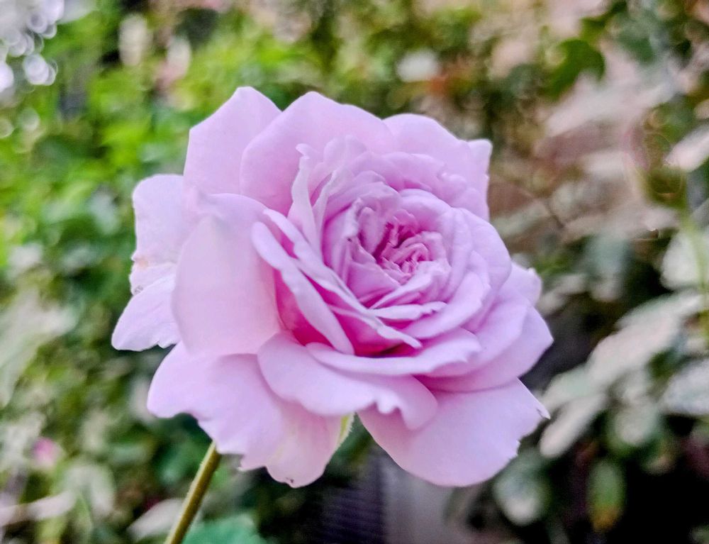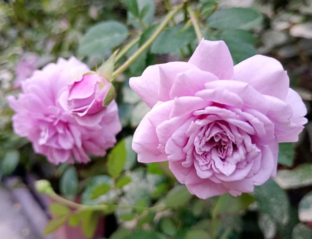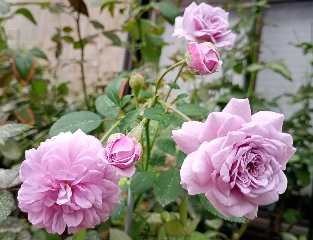 今日(=昨夕) 可愛く咲いていた 🍀花友さんから頂いた薔薇🌱、「レイニーブルー」🩷🩵🌹🌿