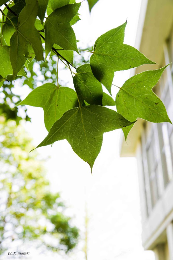 とっても大きな木で,4階建ての校舎と同じくらいの高さまでそびえています。葉っぱの形と葉脈が張り巡らされて綺麗です。調べましたらタイワンが原産とのことで,タイワンフウで名前を登録しました。