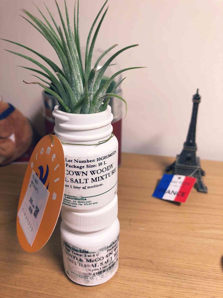 バイオで余った試薬入れにエアプランツをぶっさして見ました