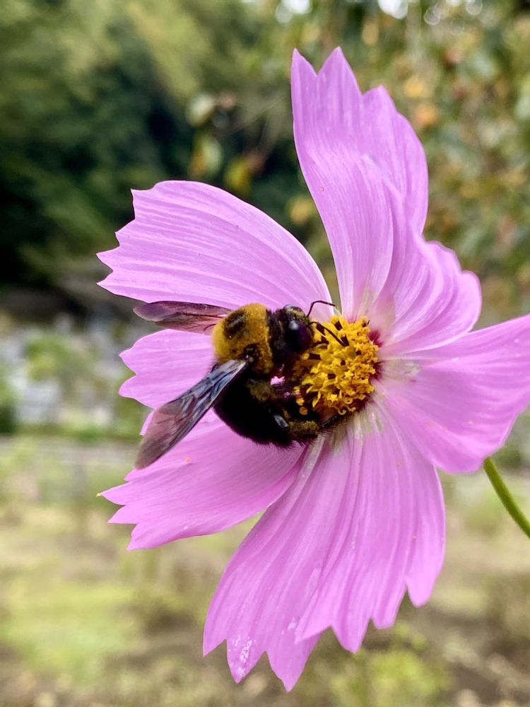 コスモスにクマバチ