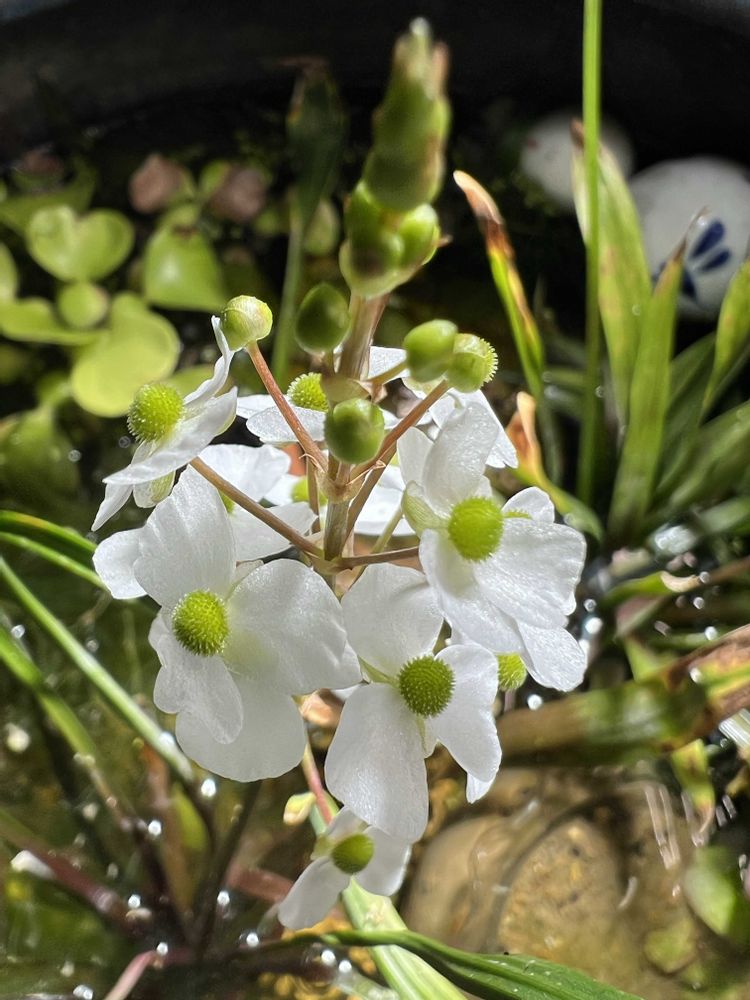 ナガバオモダカ,火鉢でメダカの投稿画像
