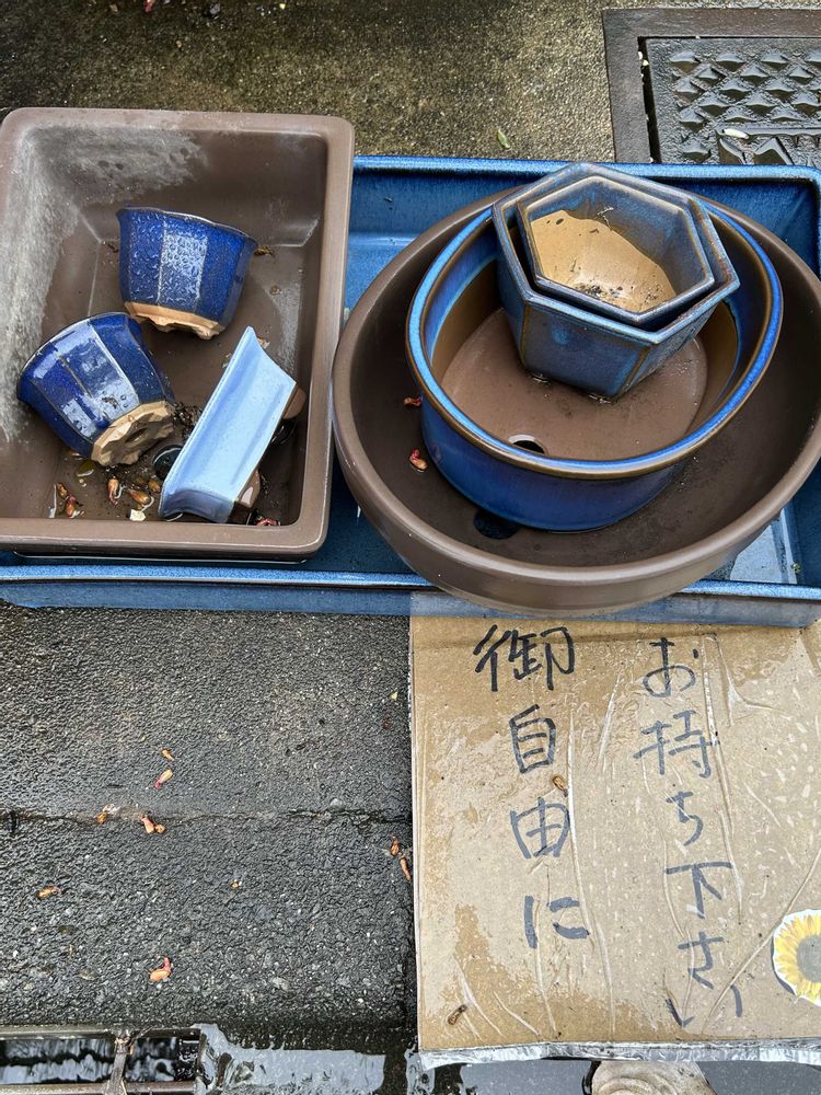 2枚目は バルコニーを片付けていて もう使わない鉢を駐車場に