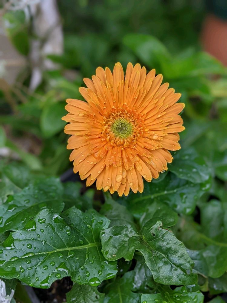 ガーベラは寒さに強いのは地植え(白)ですがこれは★になるといけないので軒下で冬越ししてますよ✨