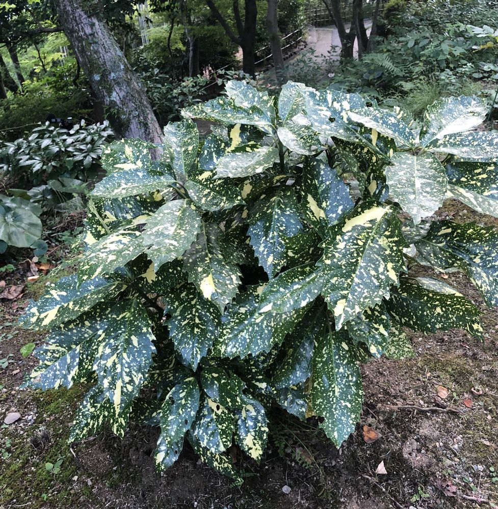 1 大山崎山荘美術館の庭。アオキ。