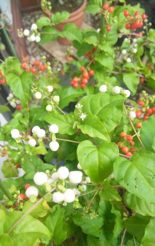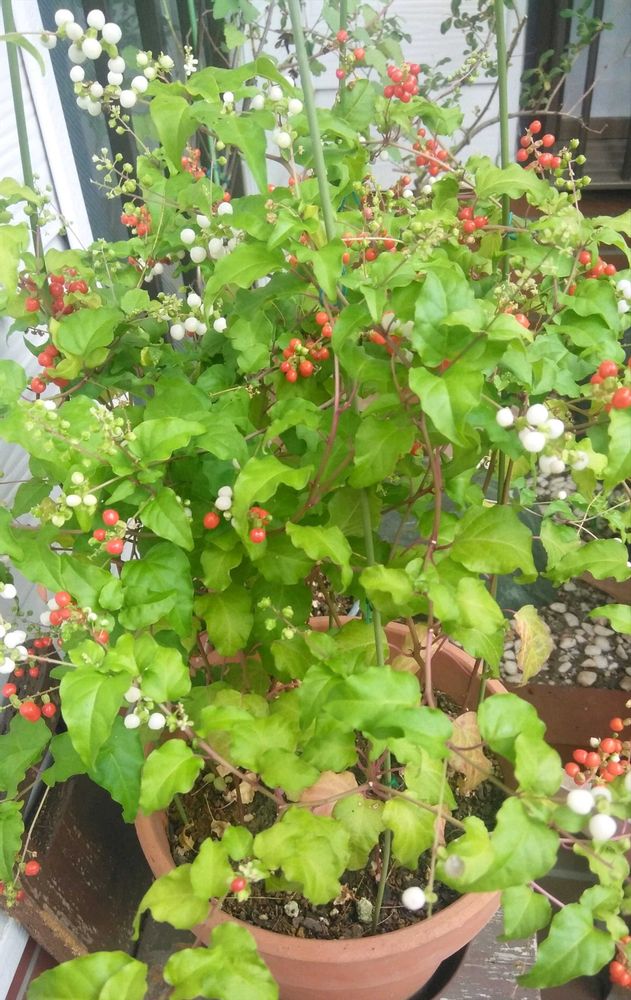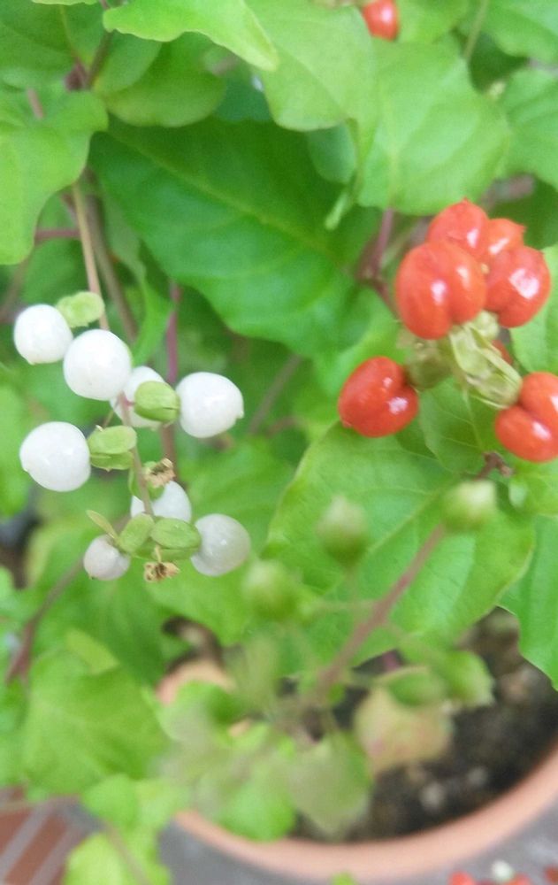 色んなところに種まきした数珠珊瑚、バラの鉢のが1番立派です。
