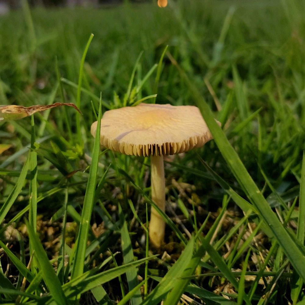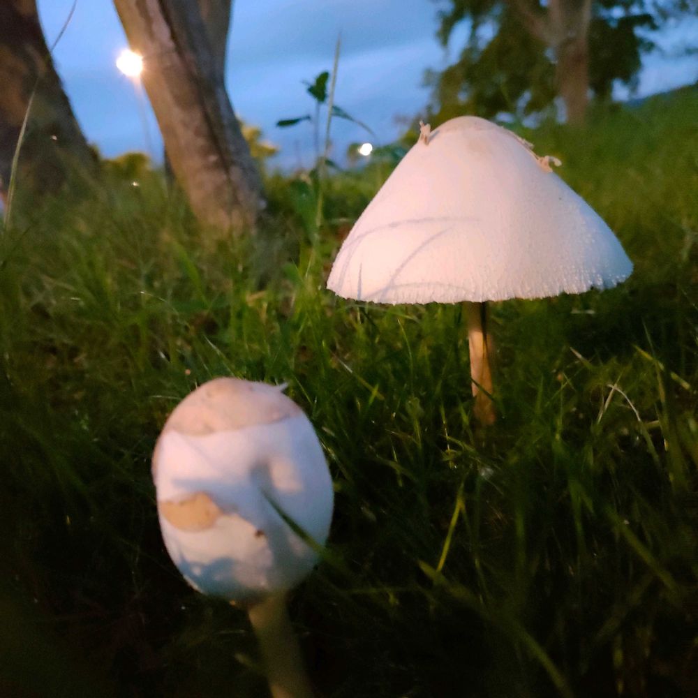雨の後…あちこち白いキノコ🍄が沢山😳 真夜中〜沈み行く赤い三日月