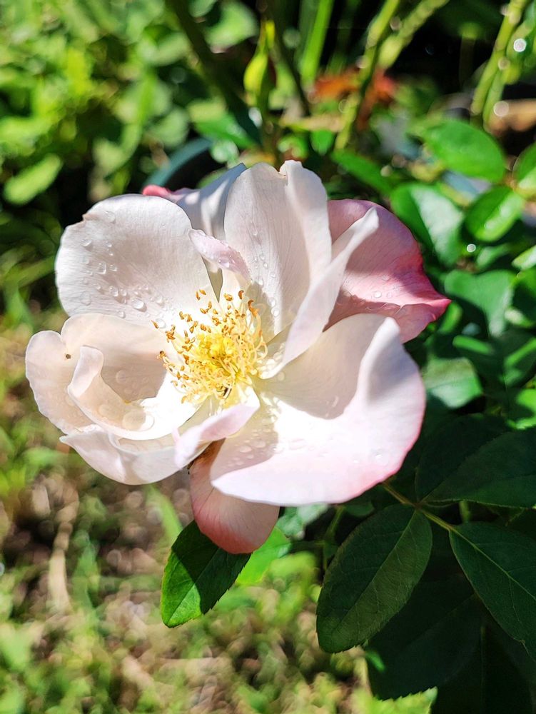 バラ グレーテルも開花。暑さにも強くてとっても可愛いです。株元にも新芽がワサワサです。