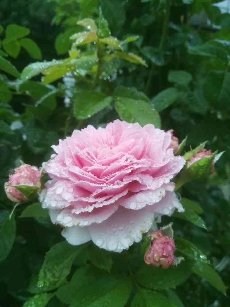 多分このバラは、葉っぱを見た感じからアルバ系統あたりのオールドローズの血が濃い品種なんじゃないかと思います。我が家にあるフェリシテ・パルマンティエに似ているので。