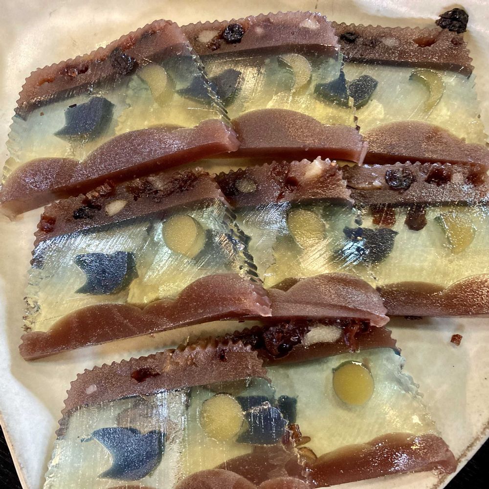 そして1・2枚目に写っているのは、GS友に頂いたお土産ですが、分かりますか⁉️中の月が上の右から左へ、そして中段下段と満月になって行くという趣向の羊羹です❣️美味しかったし、楽しいし掛けですよね!!E M I様、sen様、ご馳走さまでした🙇♀️