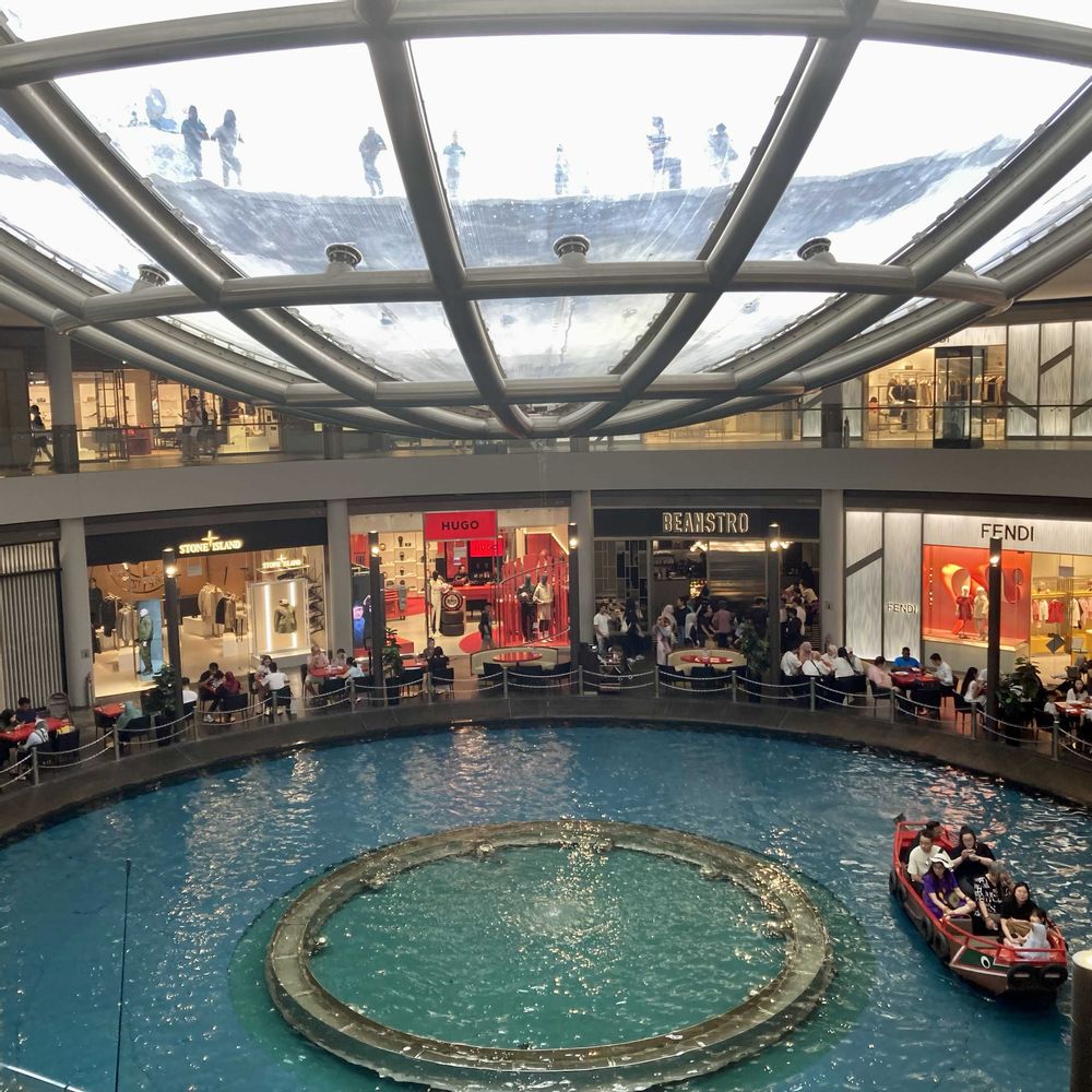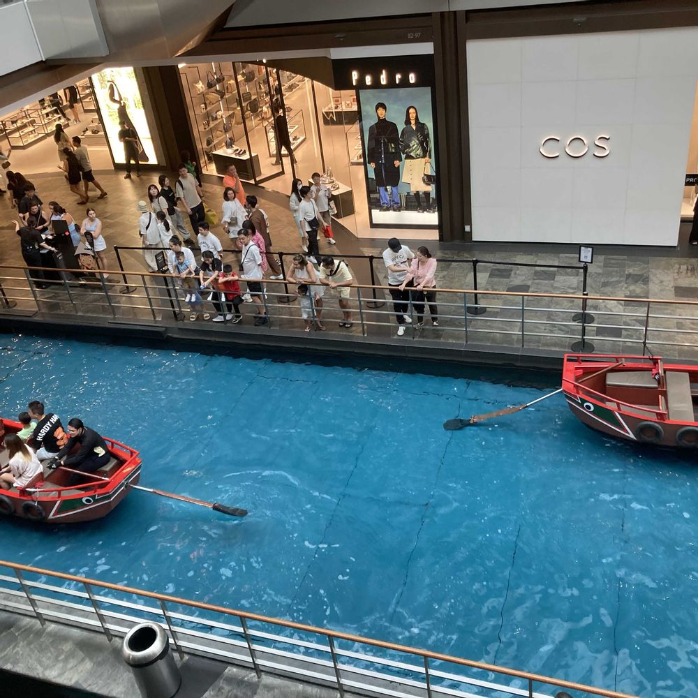 また3〜5枚目は、🏷️水辺の水曜日、マリーナベイサンズホテルは屋上プールが有名ですが、中には川があり、船が😳