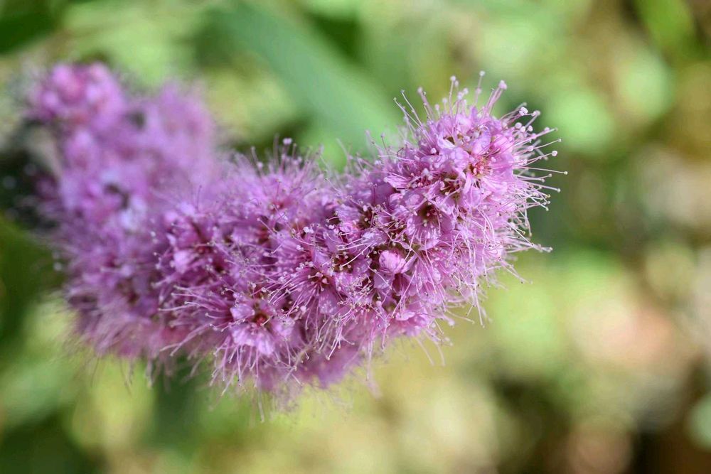 紫色💜が綺麗✨なホザキシモツケですね。モフモフでさわりたくなりますね。