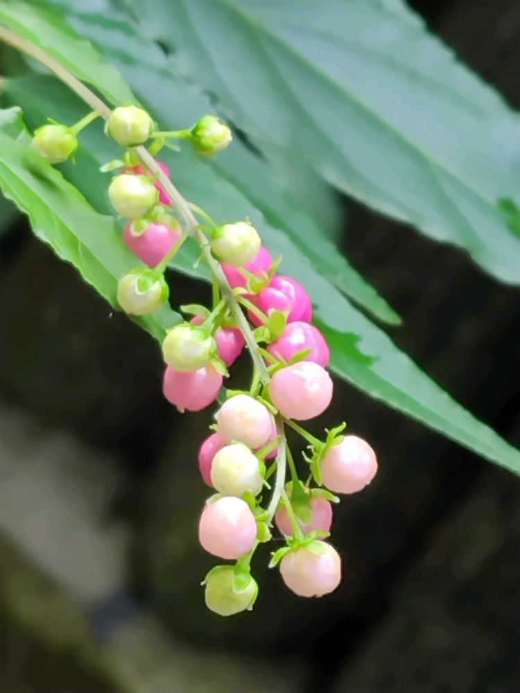 グリーンの葉っぱと白い花にピンクの実🌱❀🩷