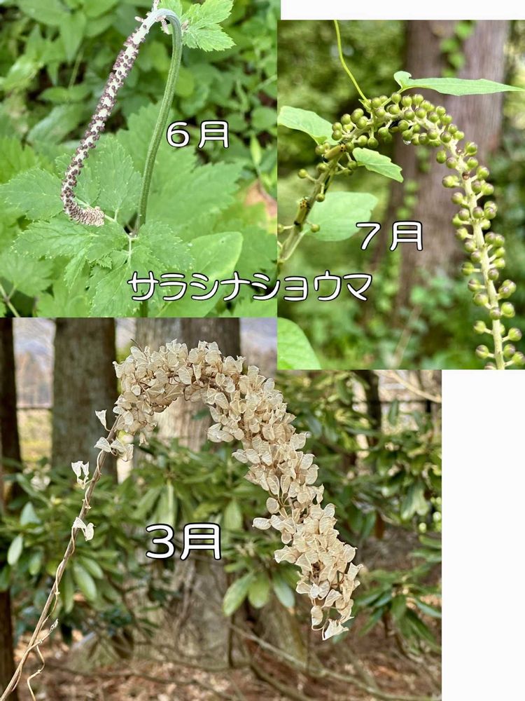 ⑤更科ショウマ(蕾5、6月)・(種殻3月)