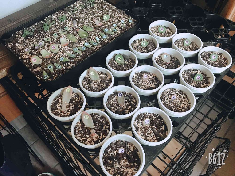 この葉挿し達はメルカリで状態のいいものを買ったので発根済のものもあってそちらは芽も出てますが…
