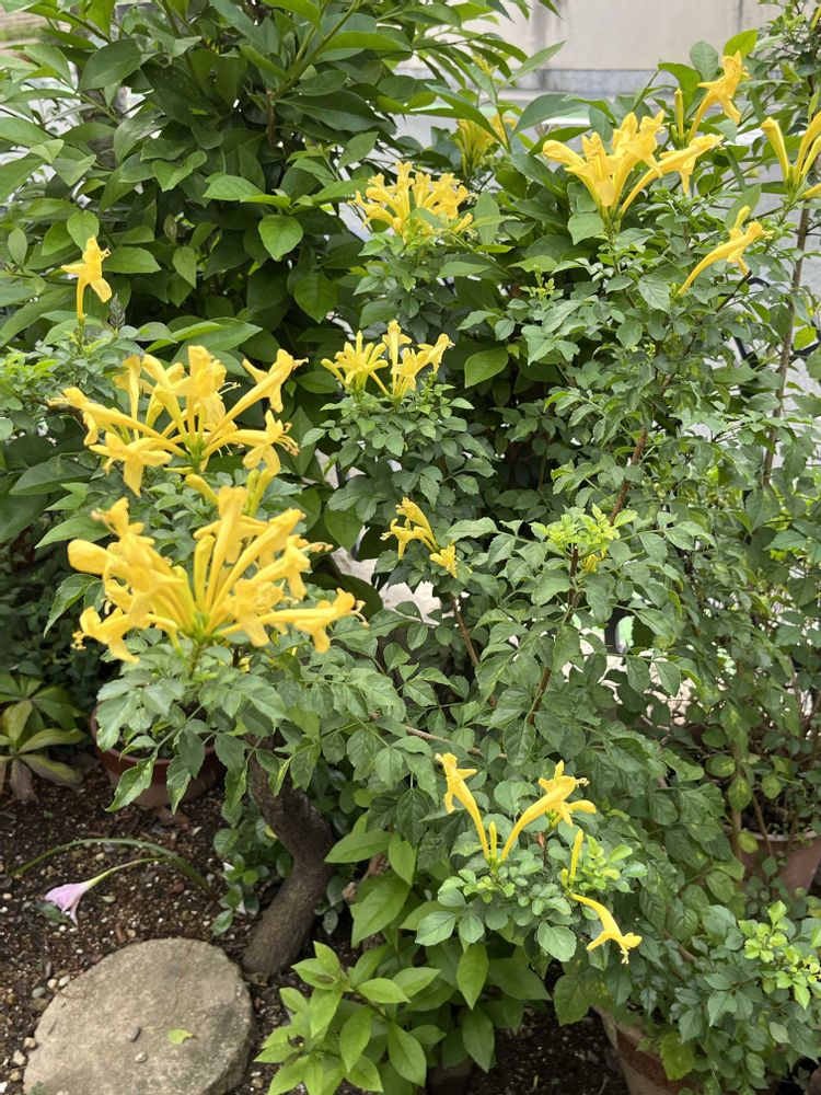 黄色いお花は ノウゼンカズラの 仲間なの。