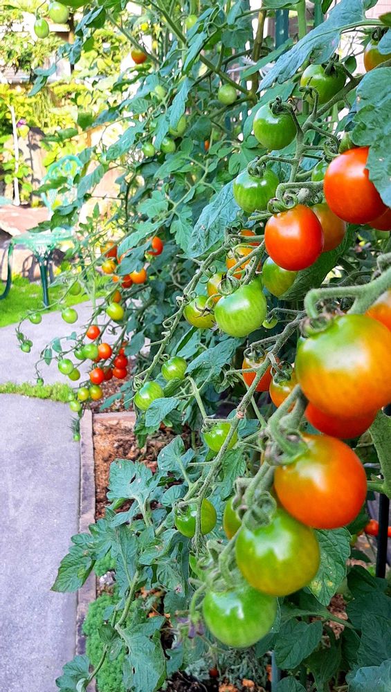 今年は、松の木の跡地 特等席に🍅中玉トマト育てました。