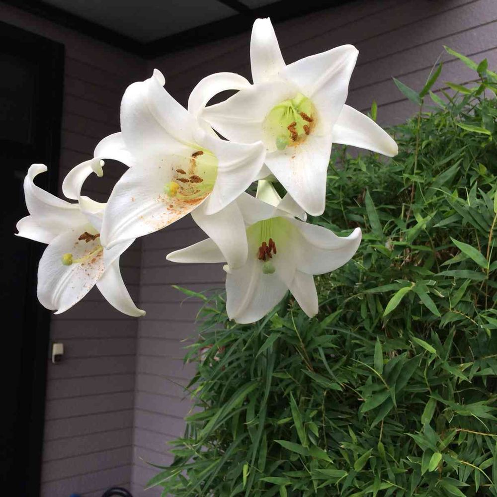 玄関に、ここ数年何故か竹の中なんですがユリが咲くようになりました😊