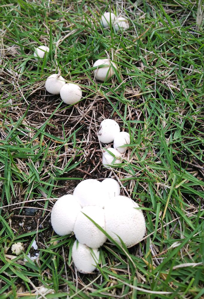 芝が剥げてるところに、白くて小さい🍄キノコが‼️