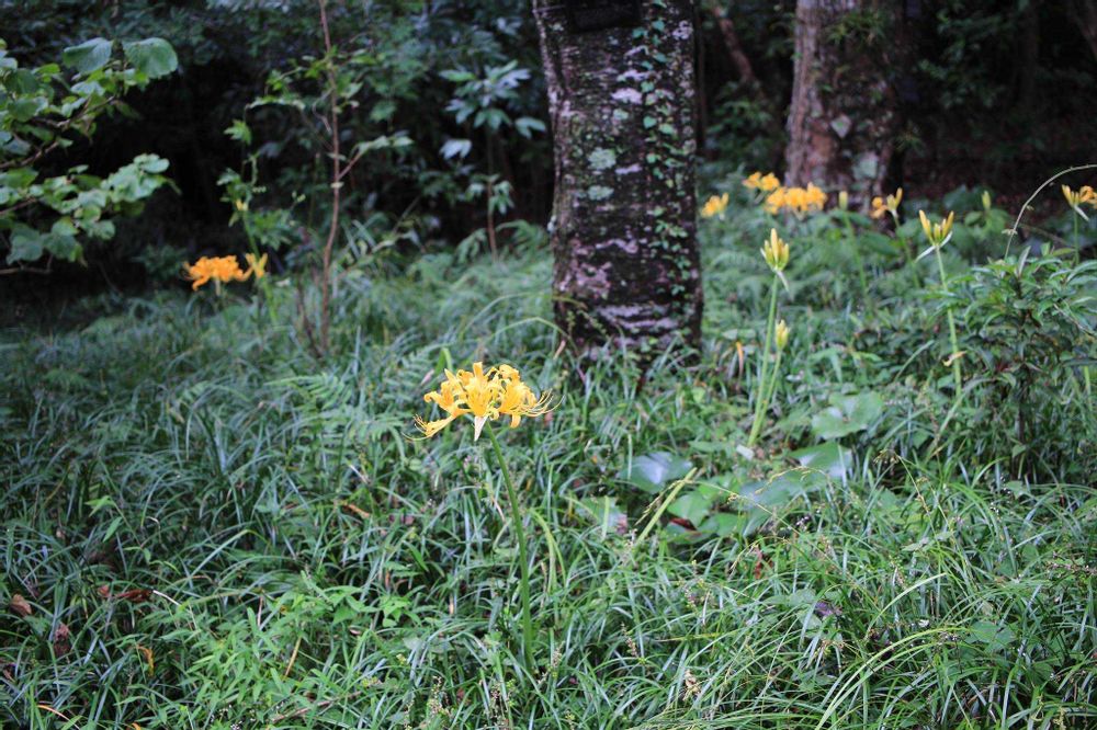 四国や九州、台湾に自生し、葉の幅が11 mm以上と広く,花が鮮黄色。ヒガンバナより少しだけ遅く咲くそうです。