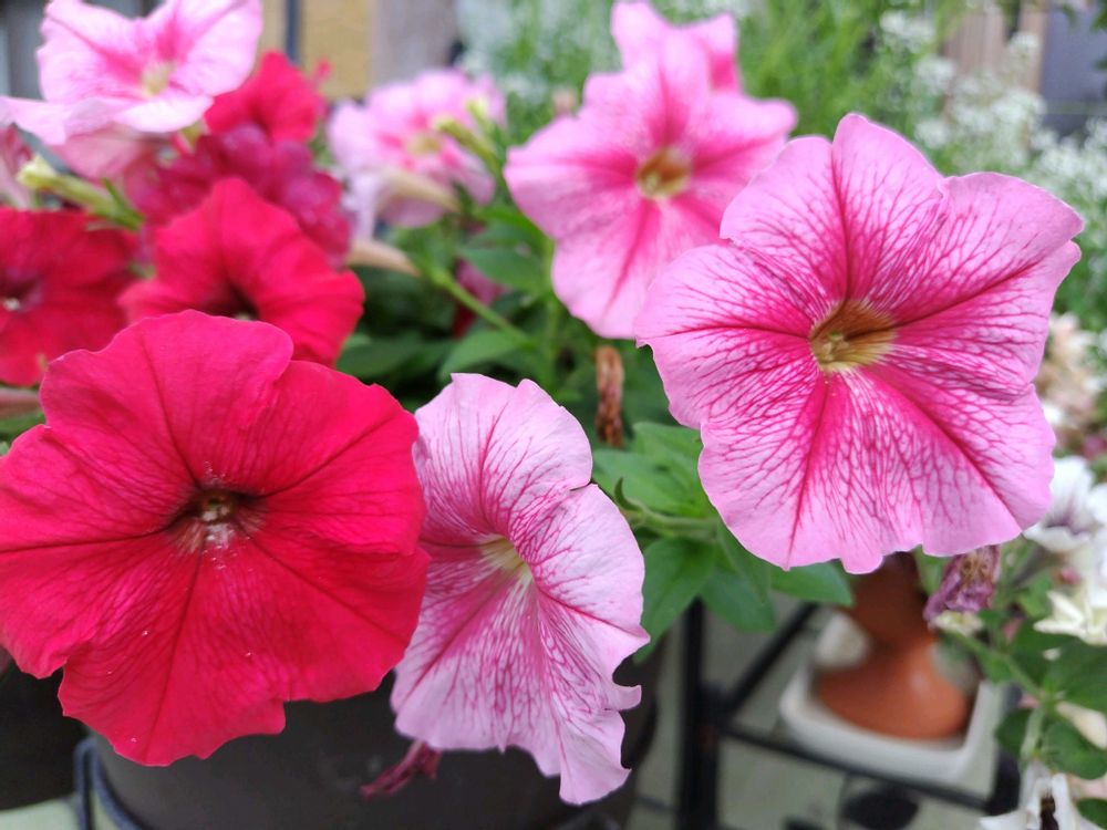 種から育てたペチュニアが綺麗に咲いてます❤️🩷❤️💚