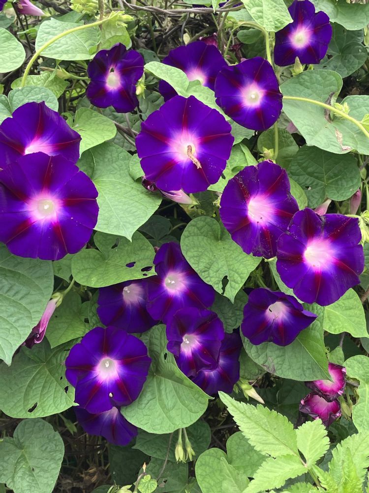 濃い紫🟣🟣🟣の朝顔さん、まだこんなに咲いてるのですね〜ステキです〜💜💜💜💜🌿💜💜💜💜🌿💜💜💜🌿
