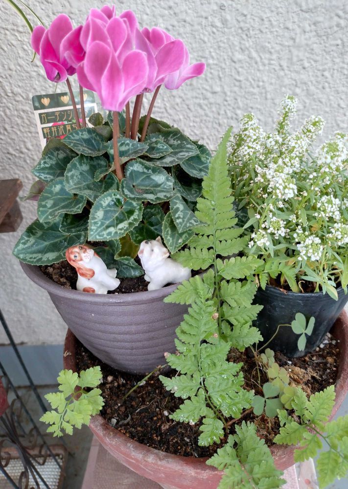❹ミニシクラメン🌼🌿やっと鉢に植えましたアリッサムは未だ⤵️🏷ワンワン祭り参加します