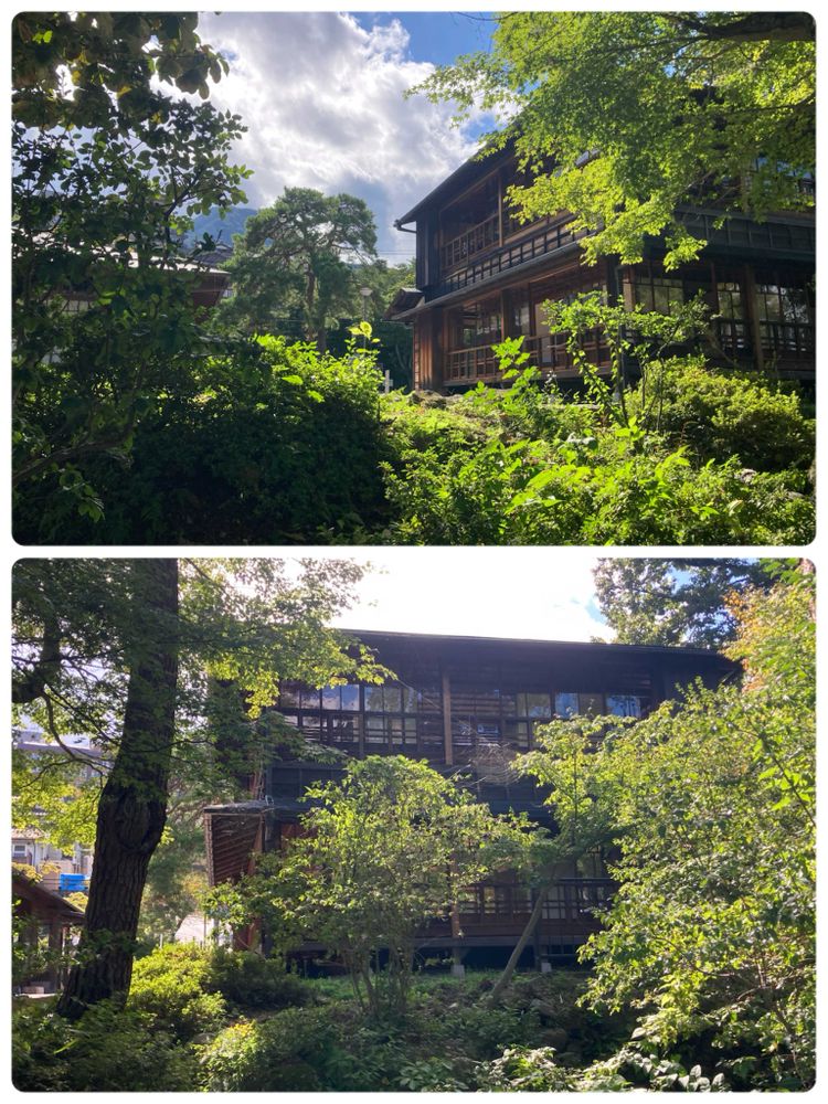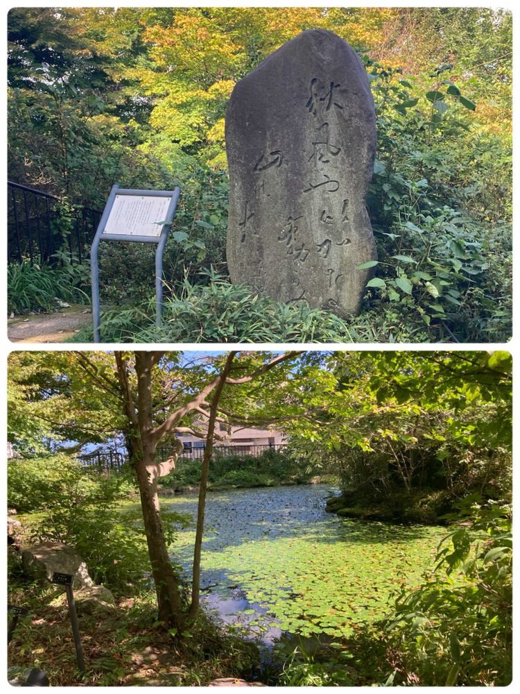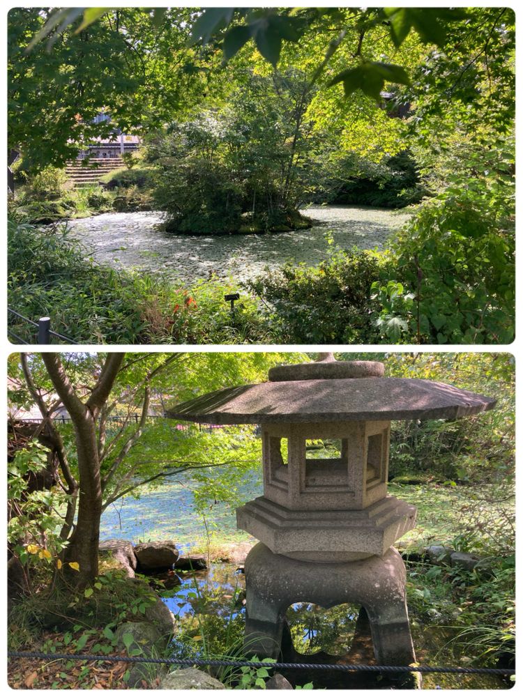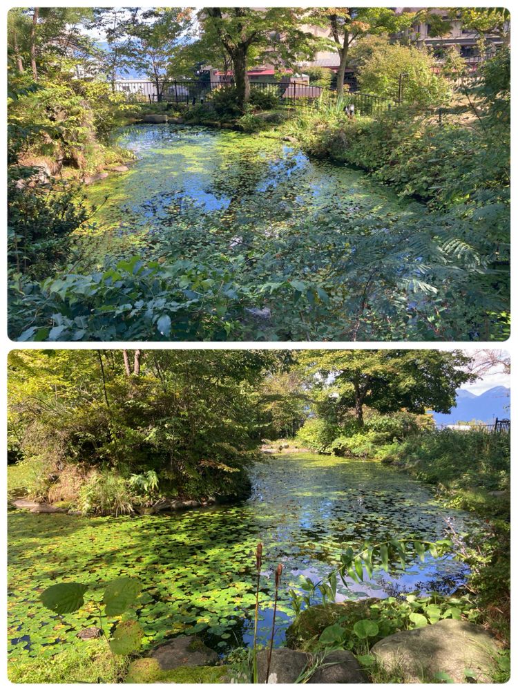 伊香保温泉石段街広場脇にある"ハワイ公使別邸"裏庭の池の周囲。 池の表面は睡蓮の葉で覆われていた。