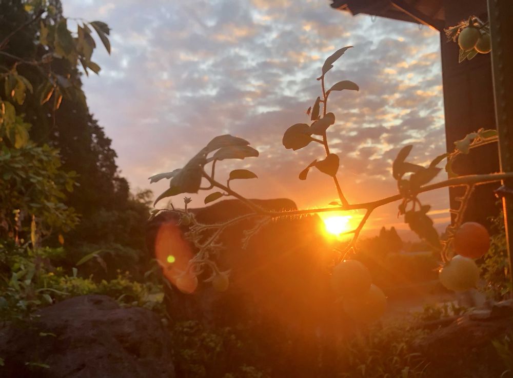 今日は夕方から🦟に食われながらも畑の続きをして、ジョウロ取りに来たら部屋側の庭先にミニトマトがちょこんとなってました🍅