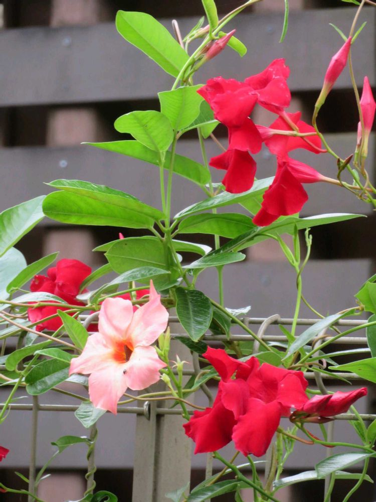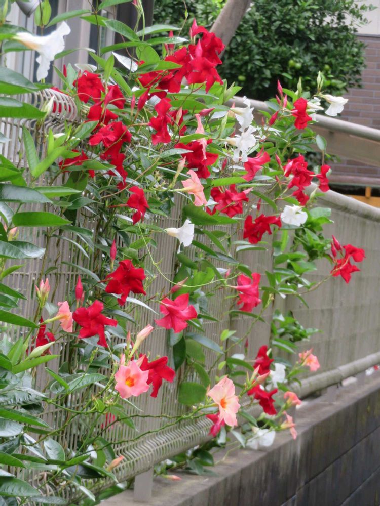 お鷹の道散歩~艶やかに咲く色とりどりのマンデビラに出会いました😊