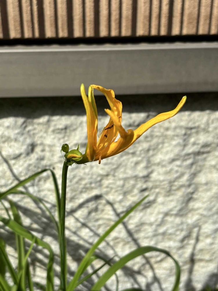 この子もこの間蕾を紹介しました。とうとう昨日咲きました。が、残念な花でした😭そりゃそうだと思います。普通は初夏に咲く花。咲いてくれて、ありがとうです。来年会おうねと言いました😊写真は、カミさんに撮ってもらいました。