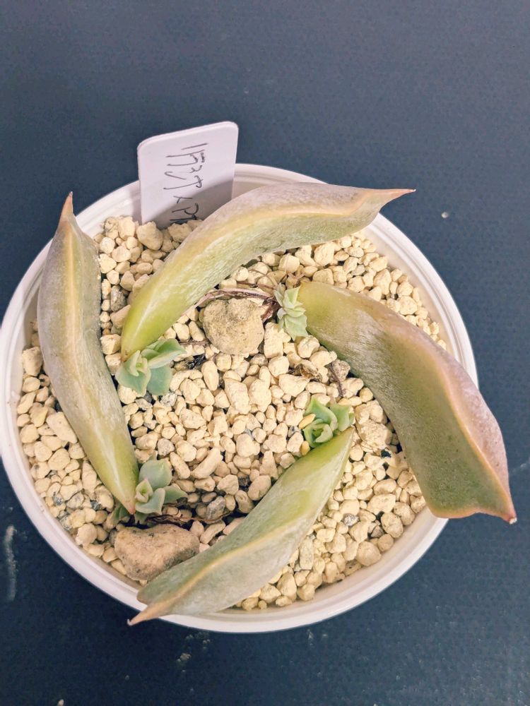 う〜ん、なんかぱっとしないけど、ホントはね、もっと美人さんなのです😭夕日に映える色合いなんだけどなあ🤣。この子もリラシナーズらしく葉挿しも発芽率100%👍