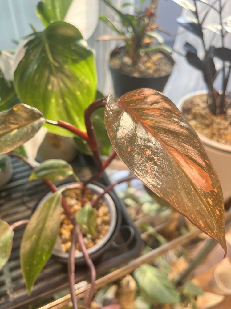数ヶ月前に形崩れとして破格の値段で買えたフィロデンドロン オレンジプリンセスも小さいながらも綺麗な葉を出してくれてます🤗