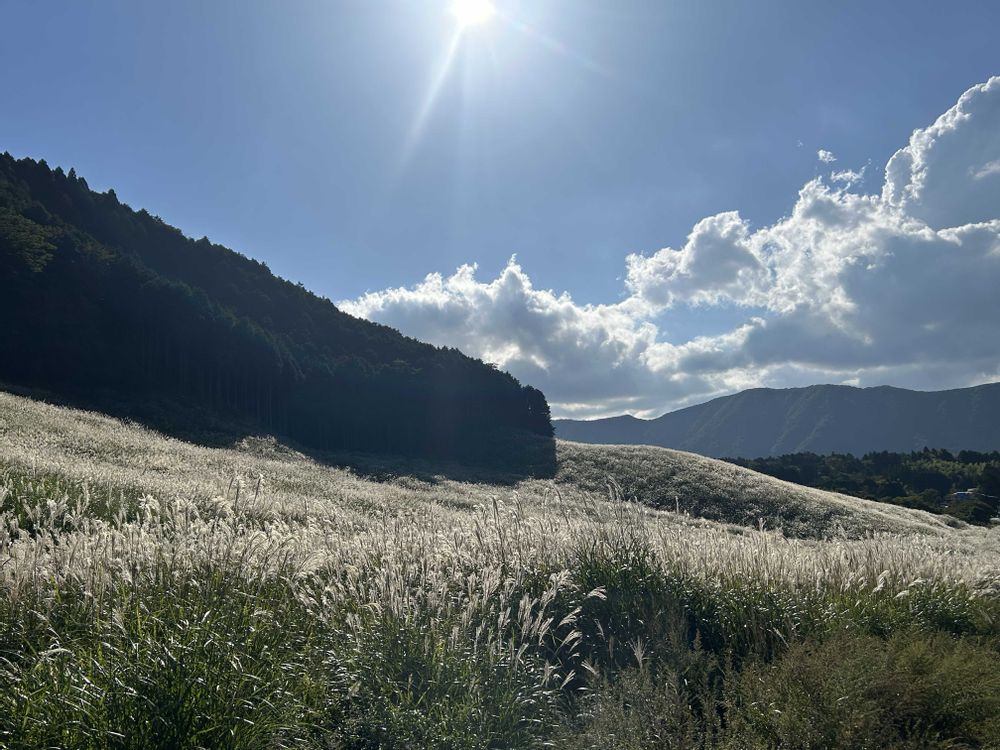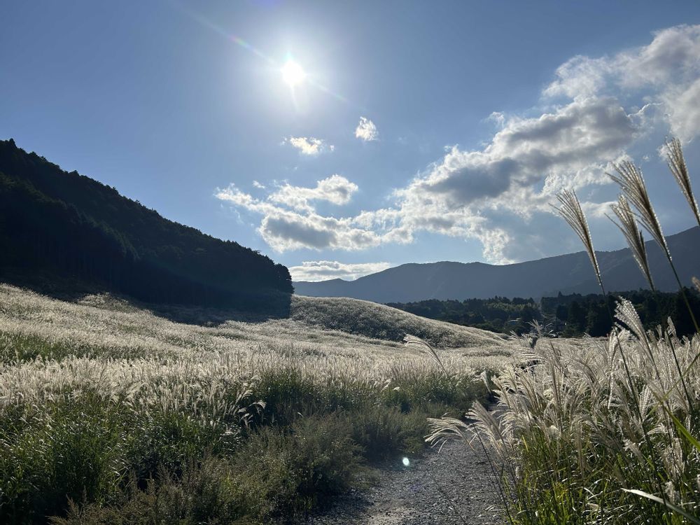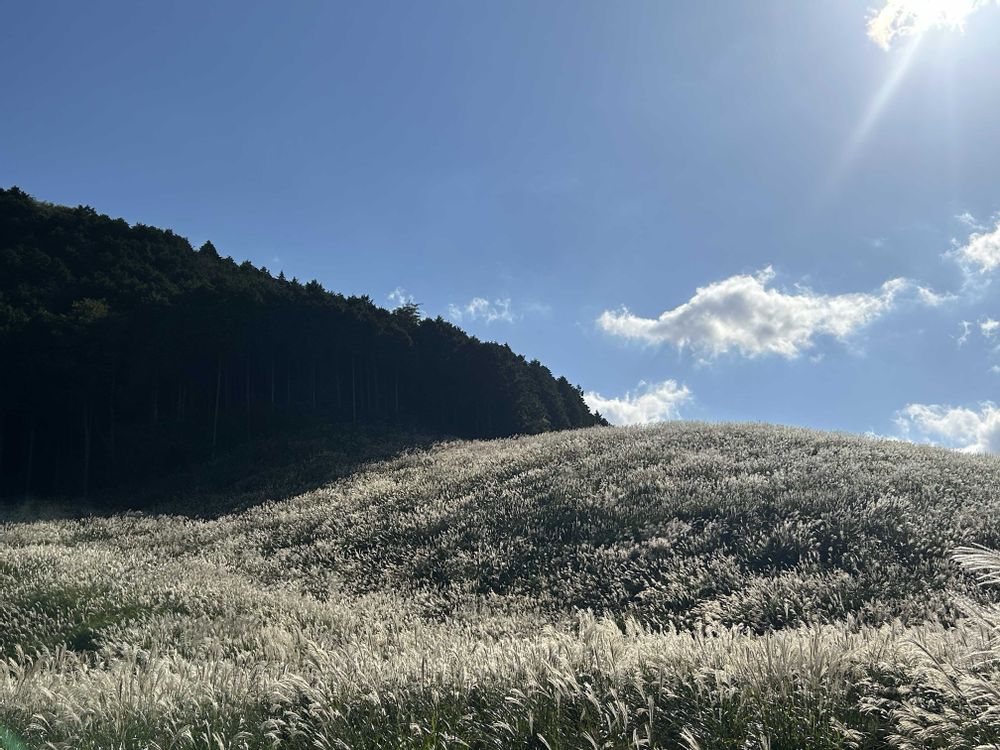 ススキの丘ですね。キラキラ光って風にナビている姿,圧巻です。
