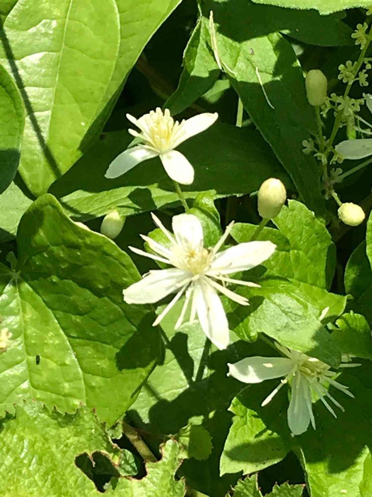 キンポウゲ科センニンソウ属ボタンヅル。藪の中から顔を出して咲いていました🤗🤗。他の写真で、それらしい葉が写っていたので、コッチでしょう😃✌️。花だけ見ると、区別できませんので、センニンソウだったら、ゴメンナサイ🙇♂️🙇♂️🔨🤗。