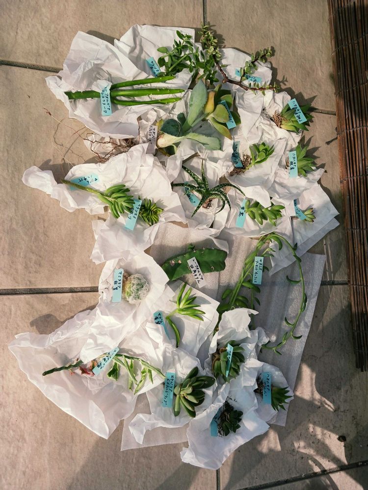 9月中旬に強風で棚が倒れてしまいました😭 折れたり葉が取れたりスカスカになった子達を カットしてまとめました 元気に成長しているので経過を記録したいと思います❗️