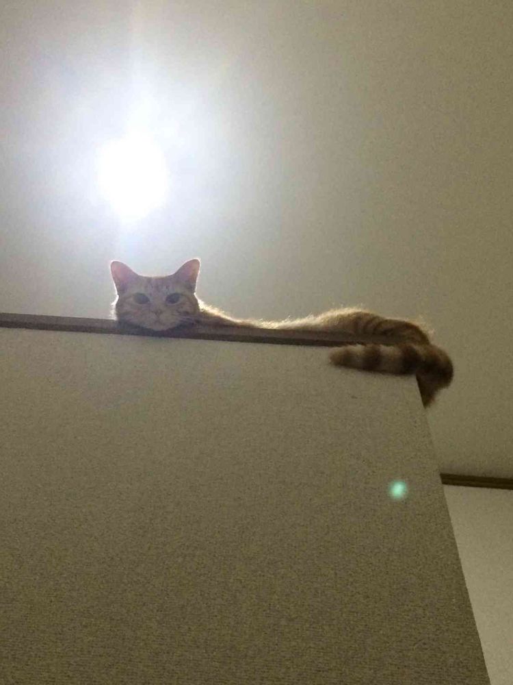 ウチのヤンチャ坊主のもんちゃんがジッと私を見下ろしていました😆