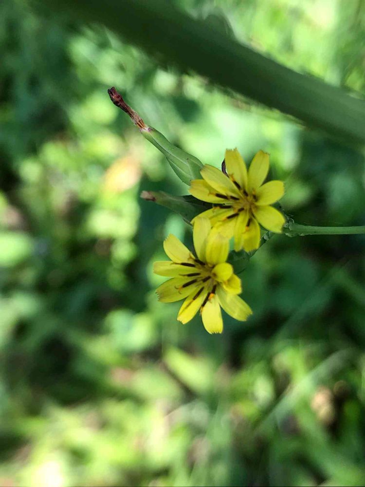 ニガナ属でなく、アキノノゲシ属のヤマニガナ(山苦菜)🌼🌼。風に揺られてピントがあいません😱😱。